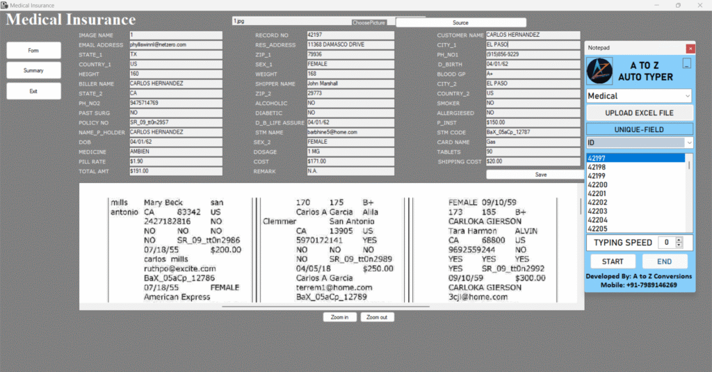 MEDICAL FORM FILLING AUTO TYPER SOFTWARE